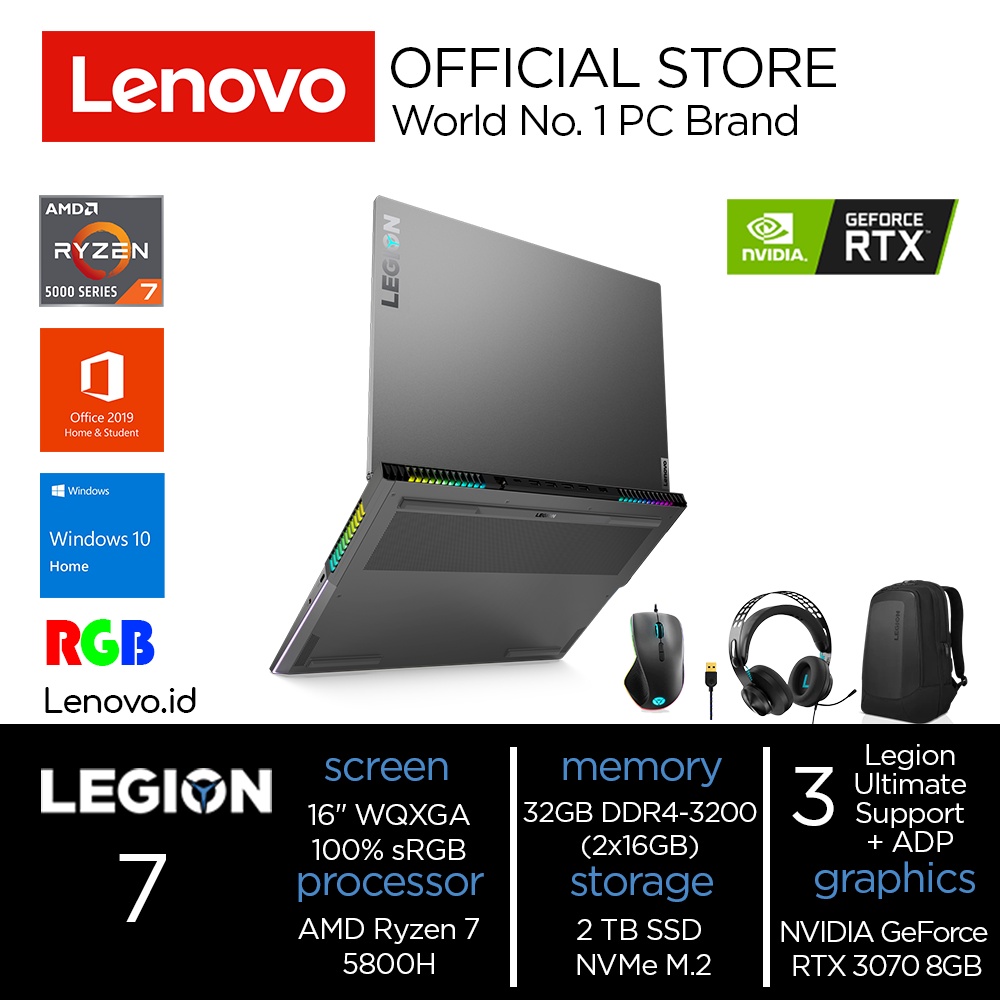 Harga Lenovo Legion 7 9TID Ryzen 7 5800H 32GB 2TB SSD 16" WQXGA IPS 165Hz NVIDIA RTX 3070 8GB Win10 OHS Laptop Gaming AMD 16ACHg6 82N6009TID Storm Grey M500 RGB Wired Mouse H300 Headset Armor Backpack saat ini masih murah hanya Rp. 38.199.000,00, kita tidak akan pernah tahu tentang Harga ini di masa depan, juga stok barang ini nanti atau besok hari, bisa saja harganya naik tinggi atau bisa juga stok sudah Habis.